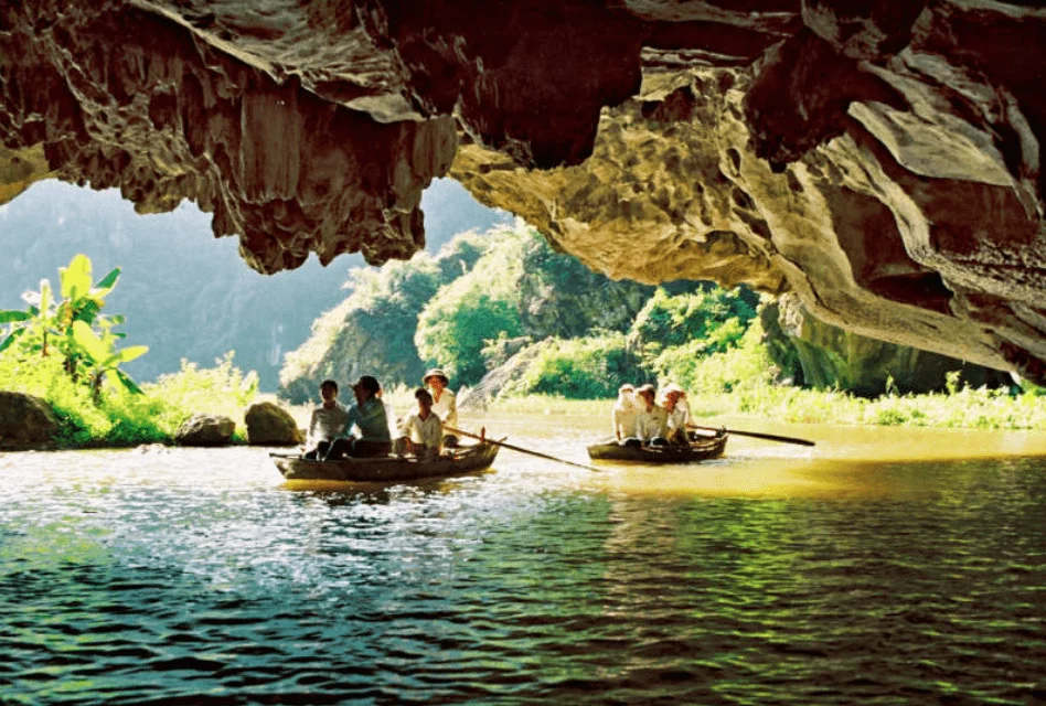 14h00: Xe đưa Quý khách ra bến Tràng An, lên thuyền thăm Khu du lịch sinh Thái Tràng An – nơi những dải đá vôi, thung lũng và những sông ngòi đan xen tạo nên một không gian huyền ảo, kỳ bí. Quý khách ngồi trên thuyền thư giãn và tham quan 4 hang động tự nhiên trong số những hang động đẹp nhất trong khu du lịch Tràng An là Hang Lấm, Hang Vạng, Hang Thánh Trượt và hang cuối cùng là Hang Đại. Quý khách còn dừng chân ghé thăm các điểm tâm linh như đền Suối Tiên và Hành Cung Vũ Lâm. Tuyến này sẽ rất phù hợp với những bạn trẻ, những người thích chụp ảnh Check in, Quý khách có thể có những trải nghiệm đầy đủ về hành trình ngồi đò thăm hang cũng như có thể lưu lại những cảm xúc, những bức hình đẹp trong hành trình về thăm Tràng An.15h30: Quý khách đi cáp treo xuống chân núi, sau đó lên thuyền quay trở lại bến.