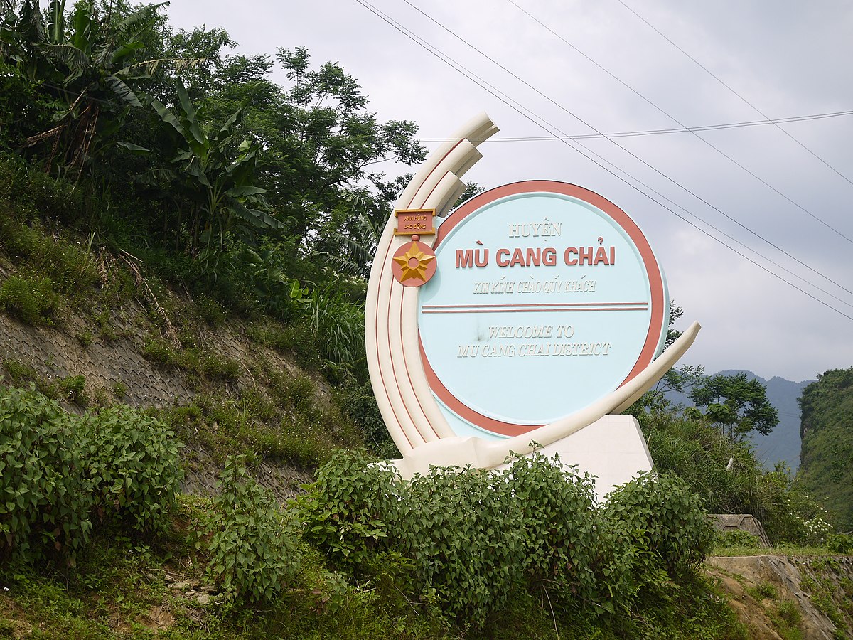 09h00: Chụp hình kỉ niệm với biểu tượng huyện của Mù Cang Chải ngay chân đèo Khau Phạ. Tiếp tục chinh phục đèo Khau Phạ – một trong tứ đại đèo của miền Bắc.