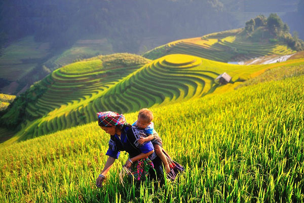 14h00: Xe đưa Quý khách tới khu vực Cầu Ba Nhà, chụp hình tự do với ruộng bậc thang hình mũi giầy. Vượt qua đoạn đường dốc, nhỏ và quanh co, Quý khách đến với ruộng bậc thang Mâm Xôi tuyệt đẹp, biểu tượng đặc trưng nhất làm nên tên tuổi cho ruộng bậc thang Mù Cang Chải. Lưu ý: vào mùa cao điểm, để chủ động cho việc tham quan của du khách nên chúng tôi sẽ để cho du khách tự túc chi phí mua vé và thuê xe ôm.
